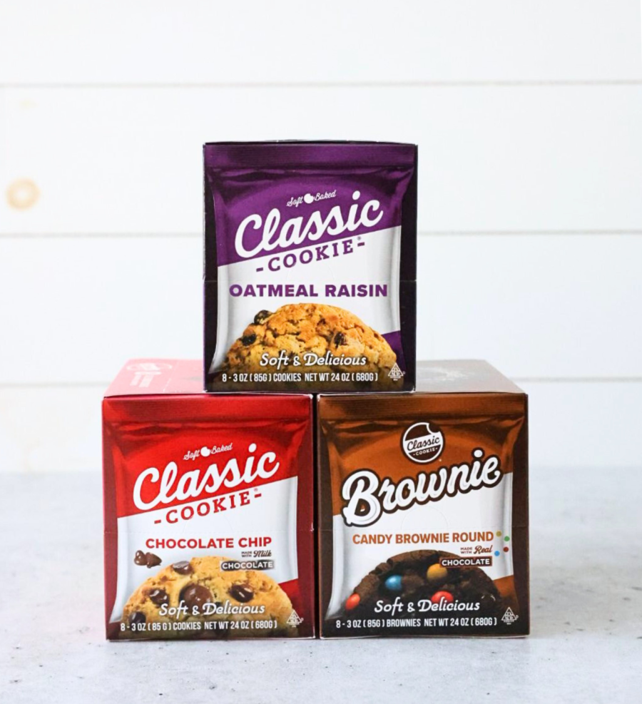 The first brownie retail product from Classic Cookie! Made with chocolate and M&Ms® Candies to create the best soft brownie snack you can get. 8 - 3 oz soft baked cookies -
